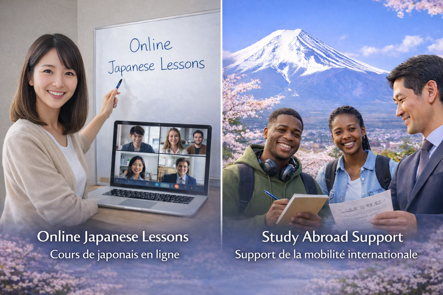 We provide comprehensive support for those who wish to study in Japan, from choosing a school and completing enrollment procedures to preparing required documents and assisting with visa applications. Even first-time students can proceed with confidence, as our experienced staff offers careful and personalized guidance. We also provide support for Japanese language learning and daily life preparation, staying close to you from before departure through your life in Japan. Support is available in both English and French.